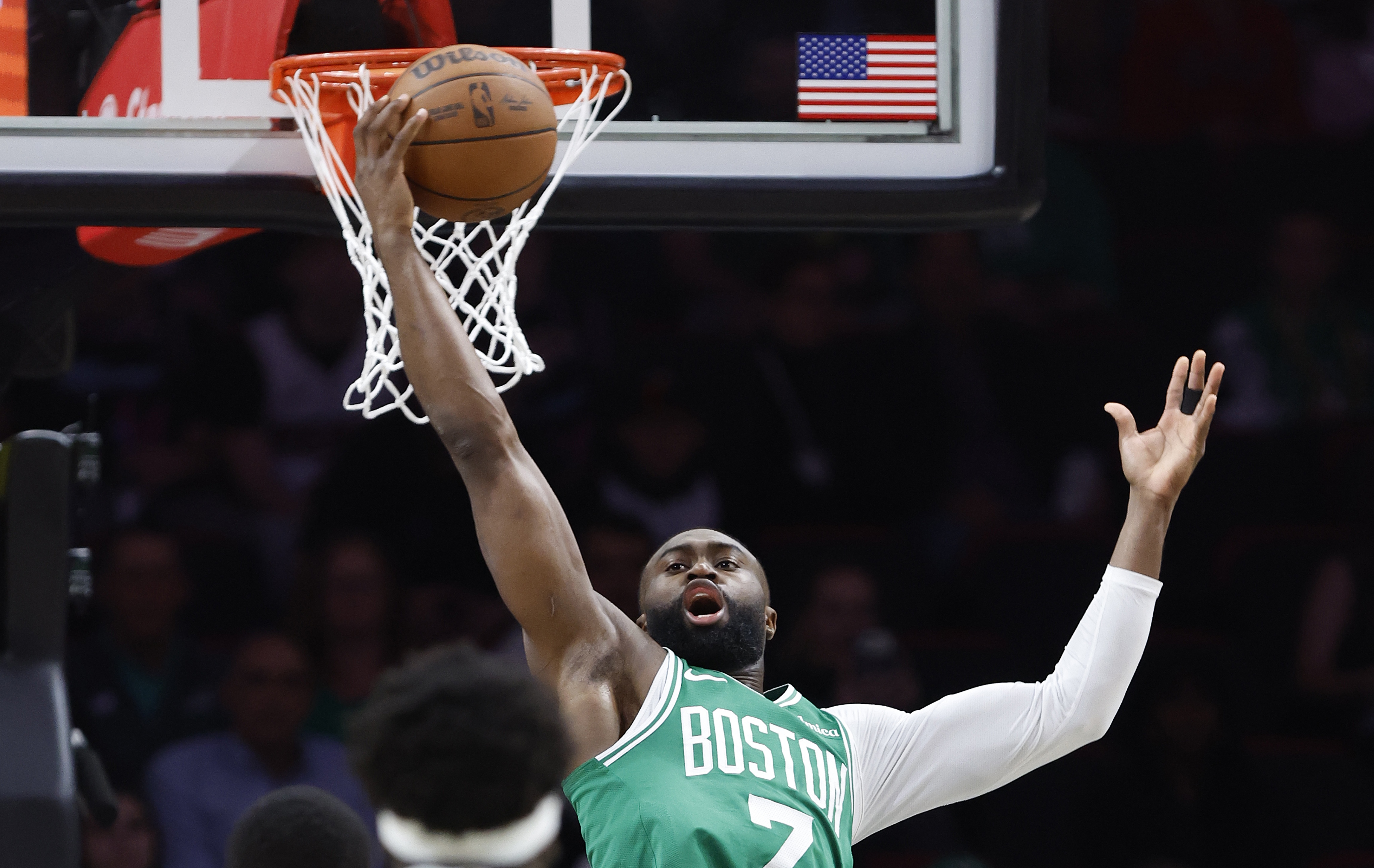 火力全开!杰伦·布朗半场15投7中&三分3中2 拿下17分9板1助1断